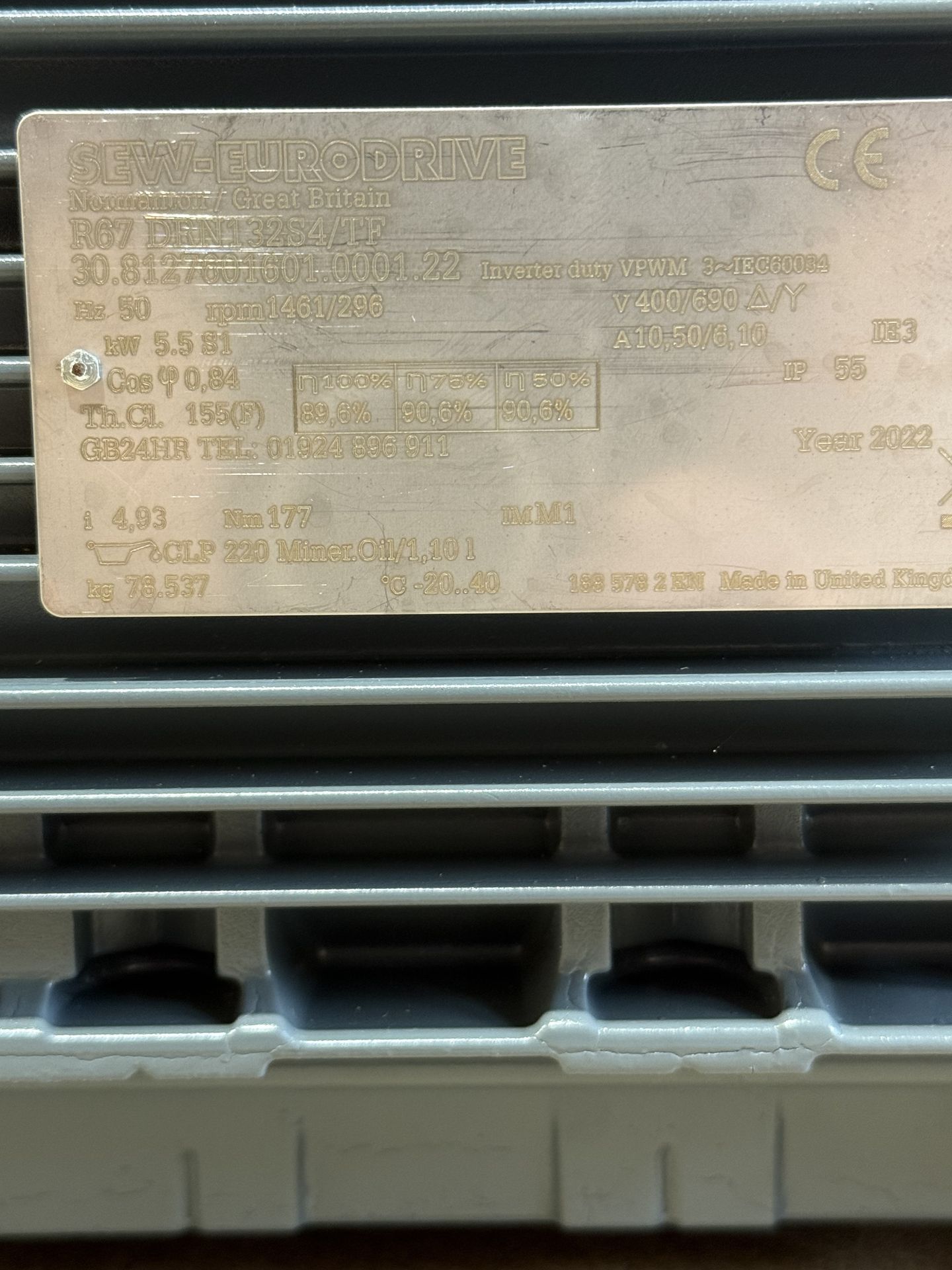 Sew Aandrijving 5,5 kw motor rpm1461/296